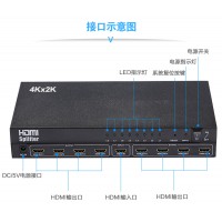 HDMI分配器视频分频器转换器1进8出一分八 4K×2K